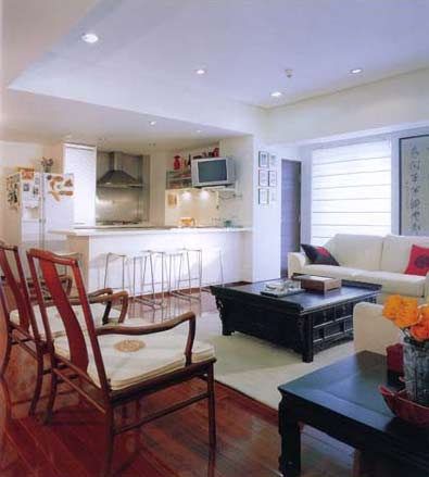 好在“黑夜过去是清晨”,英达和梁欢终于有了一个中西合璧的家。关于这一点梁欢早有她自己的见解。她说:“中式家具她虽喜爱,但总觉得不宜太多。象 沙发 、床、柜子这一类家具还是要强调其舒适性、实用性,所以用西式的。但门、茶几等可以选择中式的。这样古为今用、洋为中用,既不会过时又不会显得浮躁。她说中国人的家要有中国人的特色和文化,不能一水儿的古董家具,也不能满堂的“宜家”。 客厅的色调定成了白色调,为的是使本来不太大的空间减少压抑感。 沙发 、茶几、靠垫; 台灯 以及烟具、花瓶它们色调互补,质感相近,一看便知主人是用了心的。倒是开放式是厨房里若大的冰箱上贴满了照片和各种食品冰箱帖,看似随意但趣味盎然,被梁欢称为“甜蜜的杂乱”。