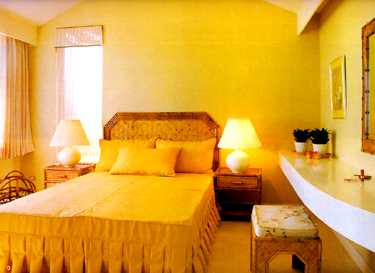 主卧室采用柔和的黄色系列,增加不少趣味效果。室内整体家具皆采用藤制品,符合一致性的协调。