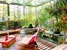 春天制造法则 阳台 1平方米也有自然美 一般家里的阳台5平方米左右的居多,而在阳台上,既要有活动空间,又要种花草,还要可以晾晒衣服……如何将大自然的万象之美收纳于这小小的方寸之间?“小中见大”当属最佳考虑,既要充分考虑到阳台的使用功能并将此项要求摆在第一位,又要保持阳台的美观与整洁,而且整个阳台的杂乱与拥挤会破坏阳台开阔的视野。 即使是在1平方米的角落里,也可以做出漂亮的园林美景,关键在于怎样搭配。晒得到太阳的地方该种怎样的植物,完全晒不到太阳的角落里又该栽什么。如果阳台可以用于种植的面积较小,就适合栽些多年生的草本植物,爬藤类植物也不错。如果面积大,再有点弧度,就更好了,能做出“曲径通幽”的效果。 阳光房 日式风格适合阳光房 如今,阳光房设计风格多种多样,简洁清新的日式风格因为容易打理所以比较常见。日式风格所选用的材料以天然的鹅卵石、石材为主。色彩搭配讲究淡雅、素丽,给人一种简朴、恬静、自在的感觉。最为重点的地方是细节设计绝不马虎,力求小至一石一木一花都能够配合整体的设计,讲究有水、有石、有木,一盏小小的石灯就非常能体现日式风格的精髓。 同时,日式阳光房设计还可以配搭多种家居风格,如果面积够大,还可以放置一张小茶几、两张小铁椅,阳光房就可以成为真正一个幽静的休憩处。朋友来到家里,可以把阳光房当作会客室,谈天说笑。一个人品茗、看书阳光房又变成了天然书房。