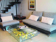 面积:110平方米 户型:顶楼复式,下层两房一厅,顶层两房加30平方米的露台 特点:巧妙利用顶楼不规则空间营造宽敞居所