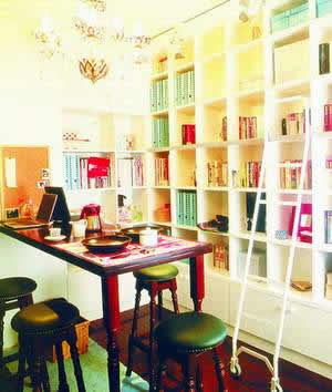 书柜同时也是厨房的一面墙,从其中一个格子“窗口”可以观望两个不同区域。 |