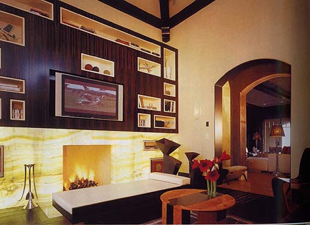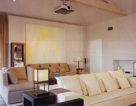 放映室:风格,都市休闲室。最充分利用的不消耗资源之电影技术,银幕墙--把产生发射效果的丙烯酸涂在墙上,造价只有99美元