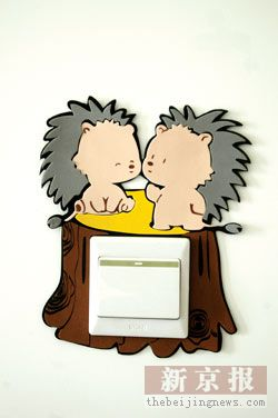 甜蜜的 开关 贴:房间所有的 开关 都贴上了一圈可爱的 开关 贴,熊、兔子、娃娃等各种卡通图案,非常讨人喜欢,仔细瞧了,发现其图画主题都是“成双成对”。