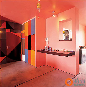 在大门左侧与大门呈90度角的墙壁上,一幅巨大的彩色装饰抽象画,让人惊异又让人耳目一新。这幅抽象画上平涂着红、蓝、黄、黑和白色等饱和度极高的色块,或方,或矩,或三角形,相互穿插,构成对称与不对称、平衡与不平衡的和谐画面。 走进这个人家,就像是跨进了一道色彩之门。 在大门左侧与大门呈90度角的墙壁上,一幅巨大的彩色装饰抽象画,让人惊异又让人耳目一新。这幅抽象画上平涂着红、蓝、黄、黑和白色等饱和度极高的色块,或方,或矩,或三角形,相互穿插,构成对称与不对称、平衡与不平衡的和谐画面。就像是一张生活的解释图,我们可以在不同的色彩空间里,放置我们最为妥帖的心情。 设计师是一位委内瑞拉人,是主人很好的朋友。这幅抽象画再明显不过地表明了设计师Victor的设计意图和审美取向,他喜欢色彩,喜欢对生活赋予一层色彩的意义,或是说色彩表明着我们生活的多个层面和多重意义。所以他举起一面彩色的旗帜,既旗帜鲜明,又张扬炫耀。同时,也袒露着设计师的生活背景,一个有着丰富色彩的南美风情的自然世界。所以,这幅抽象画既可以看作是设计师的着意之作,也可以看作是一幅进入色彩之家的导游图,它将我们领进一座色彩之门,进入一个绝对的色彩空间,并欣赏到南美色彩中的浪漫柔情。 与大门抽象面相对的是一个精致的吧台,虽然不大但别出心裁,酒、情调和色彩所构成的效果是主人家庭生活的一部分,而且或许是至关重要的一部分。 女主人喜欢简简单单的居住环境,虽然搬过几次家,也做过不少的装修,但她觉得都大同小异。与Victor经过交流,她认同了设计师对色彩的喜好设计方案。她只对设计师提出了4 个字:简单、明了。 起初,对一个被色彩修饰了的家,定义了的空间,女主人还是有些出乎意料,有些不适应,色彩似乎改变了以往关于家的通常意义,但是她很快就接受了,家变成了一个可以被色彩调节心情的地方,而且,改变了对家的感觉和想像,似乎在感性的色彩中,对生活有更多的敏感,关于家的很多内容都发生了变化。 轻的粉红 置身在客厅淡淡的艳粉中,你会感到有点头晕、目眩,有点腿软,精神仿佛要脱离身体逃逸而去,你又像遇到一个年轻、性感、貌美的女郎,你想故作镇静,坐怀不乱,但你又想多望她一眼,然而你像被缴了械似地松弛下来,无可奈何地身陷囹圄,放身在宽大柔软的 沙发 里,在妩媚的微笑中,挥发掉你一天的劳累。 这是一个让人犹如在花的芳香中的空间,无论是休息、进餐,还是在那南美风情简约的酒吧旁,坐在高高的中式吧凳上,在墙上美丽鹿头的微笑和凝视下,喝上一杯白兰地或是一杯威士忌,哪怕是一杯淡淡的咖啡,你都会感觉到体温在微微升高,即使你是一个中规中矩的人,一个生活平淡的人,此刻你的心中也会有一种纯正浪漫的暗流在涌动。 在客厅区,主人选择了色彩单纯而饱和的 沙发 ,就像抽象画上的某些色块,和客厅的整个色彩空间既相互关联又相互映衬。 沙发 中间的地毯,有着异域民族的艺术风格,主人尤其用心的是选择了一只透明的玻璃茶几,放在其上,坐在 沙发 上,可以一览无余地欣赏这张图案精美色泽雅致的地毯。只稍稍注视,便发现这张地毯像拉美作家马尔克斯的魔幻主义小说,呈发射状的花纹图案在旋转,象一种魔力似要把你吸附进去,眼前幻化出一幅幅难以言说幻像丛生的画面。 茶几上的白色百合花或马蹄莲与白色的细条木格窗,宁静得亭亭玉立。深栗色的木质家具,大体积的软性 沙发 ,像船舶的锚链,稳定着飘飘欲飞的粉色。 柔的淡绿 走进卧房,一片清丽而柔嫩的绿色,就像看到初绿的树芽和芳草,闻到淡淡绿色的嫩香,仿佛万物在更新,生命在复苏。无论现实多么纷杂,岁月如何变幻,走进这个空间,一切都变得宁静,让人永远对生活充满新鲜之感。这柔嫩的绿色,如同触摸到春天的大地,触摸到设计师对色彩的敏感,增一分减一分都不行,必须得小心呵护。在恬淡的绿色中,一张大床像丛林中一泓透蓝的湖水,两盏白色的 台灯 ,如两叶洁白的小舟,清净,纯美。 鲜的柠黄 无论是柠檬黄还是香蕉黄,把它涂遍厨房都最为合宜,水果色彩的气氛,会给你预备一个开放的胃口,尤其是柠檬黄,更让你胃酸倍增,味觉敏锐,一旦美味佳肴摆上餐桌,你的每一颗味蕾似乎都会从舌尖上跃出,捕捉食物的鲜香百味,情不自禁地咀嚼出生活的有滋有味。 无论是在客厅,还是在卧房,那宁静含蓄的木格窗都会让人产生无可名状的情绪。女主人嫌挂 窗帘 麻烦,这是她对设计师唯一具体的要求。任意旋转90度的木格窗,根据角度的变化,可以随心所欲地改变房间里光线的明暗。与阳光一泻而进的玻璃窗比,更适合对生活有细微感受的主人。光线通过木格窗,一线一线地照射进来,并且通过主动调节,改变进来阳光的多少,室内的明暗在可控制、调节的变化中,营造出不同的情调。 女主人说,她更喜欢晚上待在家里,夜晚,色彩和灯光的结合,室内的颜色不像白天那么艳丽,形成了与白天不同的气氛和情调,有点暧昧,她喜欢这种感觉。