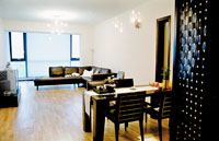 刘孜希望将卫生间与卧室的墙打掉。 家具与灯具:最体现个性的物件 刘孜家的墙上没有多余的装饰品,她说自己最受不了的就是到处贴上本人的明星照。她眼下正在寻摸一些可心的现代小画,准备适当地往墙上挂几幅。细看刘孜家里的物件,最具个性的有两类:一是木制家具,一是玻璃灯具。 客厅里的餐桌、书房中的书桌和卧房里的床头柜,样式和颜色特别统一。都是流畅的 线条 +简洁的造型+环保的木制+单纯的深色。一问才知道,这些家具都是刘孜亲自设计,并且监工完成的。她说,我先是去家具店参考一些现成的家具,然后再看一些国外家具方面的画册。最后再根据我自己的实际需求,设计家具的样式。 也许长期生活在水银灯下的人,对光线特别敏感。刘孜对各种灯具,简直可以说到了着迷的程度。她家里的照明灯具有近百盏。刘孜到泰国、香港、澳洲、英国等地旅游,一定要去光顾那里的灯具商店。然后再不辞辛劳地把灯具背回来。至今她还能清楚地告诉你,这盏灯是从哪里买的,花了多少钱;那盏灯是什么材料做的,买的时候费了什么周折等等。 除了现代的灯具,刘孜还收藏了不少各式各样的烛台。它们有的像一块顽石,有的是半个鸡蛋壳,有的如一条铁船,有的似一座石城……形态各异、情趣盎然。