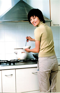 有空还是很喜欢煲汤喝 到刘孜家做客的那天,正赶上她的生日,屋里摆满了五颜六色的花束,让暖暖的空气里浮着一层清香。春天的气味,也从半开的窗缝里溜进来,眼前的一切都让来者感觉舒爽宜人。那一天,刘孜没有化妆,她说自己喜欢这种素面朝天、清清爽爽的状态。她说,装修房子时,她基本也是这么一种指导思想——简单、实用、清爽,她不喜欢特别花哨的东西。 选房:偏爱有草味的地方 刘孜的住所,位于京东一座全封闭的白领公寓里。回忆起自己装修的日子,刘孜说,那段时间,她特别兴奋,成天开车围着北京城转悠,今天买个凳子明天买盏灯,满脑子全是装修的事儿。没一个月的时间,就把一套140平米的房子装好了。刘孜说,装修等于是人家给了你一个空白的画板,你可以把它弄成很多不同的风格。 从刘孜家客厅西面的落地窗望下去,是好大一片绿地,其中有网球场还有假山石。刘孜说:“夏天的时候,在我的房间里可以闻得见草味;晚上偶尔还能听到蛙鸣。能够闹中取静,是我特别偏爱这个地方的一个主要原因。”