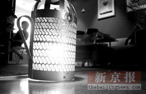 用暖壶做的灯,光线从镂空缝隙中散出来,四周光影斑驳。