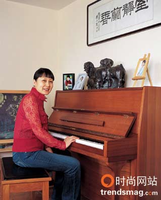 餐厅 凯丽看中这个房子除了觉得卧室和卫生间大外,最重要的原因是开发商送了一个很大的顶层露台,夏天非常的舒服。她还在上面养了鸽子。说到这里,凯丽忍不住眉飞色舞起来,“咱家是福地啊,这个你一定要写,就说鸽子吧,来家没几个月突然就看不见了,我们还以为它飞了呢!突然有一天我先生想起来,因为他小时候养过鸽子,就说是不是生小鸽子了啊?伸手一摸鸽子窝,结果鸽子在里面啄他,真的是生小鸽子啦!一共3只呢!之前我们在郊区的别墅那儿也养过一条狗,小狗买来很小,在我家不到一年长得好大,后来一窝生了七只啊! 凯丽家的家具都是她挑的,比如 沙发 啊、桌子啊、灯啊,她跑起来也不厌其烦。客厅一角放着一台钢琴,凯丽说那是给女儿买的,说话间走过去弹了一曲,当听到赞扬时忍不住哈哈大笑:“我绝对是乱弹琴,什么都不会,谱都不识,但是只要会哼的歌拿起来就能弹,也不知道手指弹的键是哪个音。当年上大学的时候,常常有形体课老师在旁边给我们弹钢琴,老师不在的时候我们就偷偷弹几下,就这么学的。有一次一个钢琴专业的朋友来我家看到说你这是弹的什么啊?我说,你都不知道我老公听成什么样,他觉得我太有本事了,弹一手这么好的钢琴,而且每次听还坐在旁边打着拍子说真好啊!很陶醉的样子。”