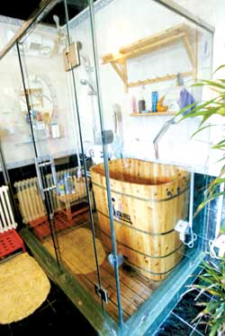 拍戏回家泡个澡 家居节能留心细节 “不管房子的面积大小,在装修时,还是要考虑到节能。不是也有人说,买得起房子,住不起啊。”马羚说。“家里所有的灯都是 节能灯 。在卫生间里,放了一个小的木桶,还放了一个大浴缸,浴缸当初是为儿子在家学游泳时买的。像这个小木桶,每次拍完武打戏后,我必须泡中药浴,否则第二天起不了床,全身腰酸背疼的,也用不了多少水。而这个大浴缸,偶尔奢侈一次就可以了。庭院里喷泉的水,一个月一换,我会用那些水浇花,这样一点也不浪费。”