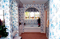 花朵装饰的 卫浴间 参赛单位:东易日盛装饰公司 卫浴除了满足人们的基本需要之外,也是房间整体装修风格不可或缺的一部分。如本作品,设计师将雅致风格进行到底,素色的花朵辅满了整个墙壁。从而浴室不再仅是浴室,而是成了主人挥洒浪漫的舞台。古罗马风格的开放式浴门设计将明暗与干湿两个空间分隔开来,花朵形状的浴缸与壁纸相得益彰,驼色的地毯既可防滑又能保证更快吸收多余的水分。 参赛作品2: