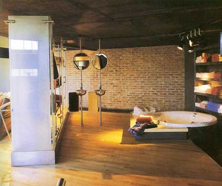 卫浴间的干湿分离,早成共识。但其收纳功能及方法选择,却人见仁智、不尽相同。本浴室则选择向立体空间发展,效果自然是别具情调,值得借鉴。