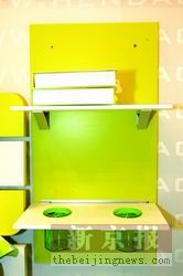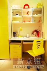 带上架的写字台 拆卸方便 灵活使用 书桌上的架子既能成为独立的书架,也能方便地装上。目前有粉色、浅绿等颜色可选。 参考价:上架234元 发现地:我爱我家家居店