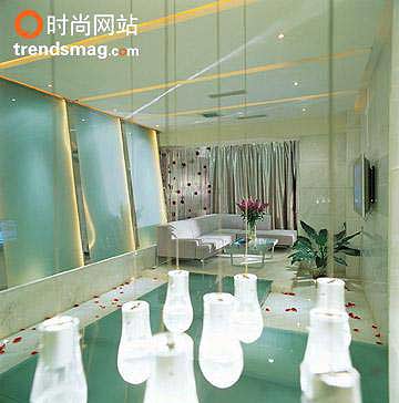 女人如花似水 设计空间也是设计情趣 陈贻和张睦晨,一对年轻的艺术家夫妇,双双毕业于中央美术学院,长期受到的艺术熏陶,使他们在涉足室内设计领域时,也始终在探求着空间中的艺术表现形式。听说他们最近在北京完成了一个美容空间的改造,我们当即约定去看一看。由于美容院白天营业,我们只能在晚上参观,当我们驱车到达的时候,已是夜里十点,它那全玻璃幕墙的外立面透着柔和的光,没有白天的喧闹嘈杂,似乎更有一种清新宁静的舒适。
