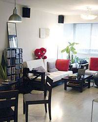 基本户型:两室一厅 建筑面积:97平方米 装修造价:约8万元(包括装修费、设计费、整体厨房、水暖设备等,不含家具、家电) 使用时间:4年 雅人其人 女主人 李璐 年龄:28岁 职业:公关公司客户总监 爱好:上MSN、郊游、学习 去李璐家做客,进门就能坐在两只叠加的汽车轮胎上换鞋,原来是自家车上报废的,扔掉可惜。