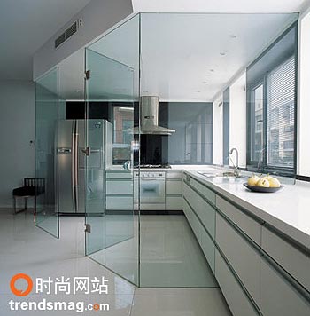 透明的厨房 在这个新近完成的空间里,设计师用直线勾画出了一个清爽无比的家居环境。若说有什么遗憾,只能说作为一个家而言,似乎太硬朗了一些,但是生活的痕迹是需要居住者在家里慢慢着色的,一点一点的,生动就多起来,生气也多起来,空间的痕迹可以用手来消除,生活的痕迹却是要用心来添加的。 |