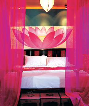 轰轰烈烈的色彩装饰 一踏进门,恍若隔世。一个极浓艳的、有蠢蠢欲动的香气的房间,简直惊世骇俗:极纯的蓝、极艳的粉、极亮的明黄,金色的顶,黑色的地,纯粹得让人窒息的色彩,就这么轰轰烈烈地蔓延,和随处可见的藏式家具一起,把空间装得满满的。加上幽幽暗暗的灯光,曲曲折折的通道…… 几种浓烈颜色本应互相冲撞到发出声响,娜姆却让它们散发出浓郁风情,不是纯民族的,不是现代的,也不是古典的,甚至不是另类的,或许只能说那是属于娜姆本人的。硬是个性到如此地步,也要颇具一番功力。 娜姆解释:蓝色是故乡泸沽湖的颜色,那里的水蓝风清,是一生也不会忘记和抛弃的地方;又鲜又亮的粉红是莲花的颜色,娜姆最爱的颜色;而自小接受藏传佛教,进而对这种明黄色虔诚的信仰自然也是顺理成章的。 从她叙述的语言中可以感受到,她对家的重视丝毫不亚于对待自己。自小离家后的种种际遇和漂泊,让她把家作为全身心的皈依。一旦拥有了自己的空间后,便狠狠地宣泄全部理想和性情,不管不顾地充分绽放,把家也变成了绚丽的舞台。 由蓝色做底,艳粉和明黄显得分外娇艳,凝重的黑色只是平衡的点缀。 活色生香的居室文化 娜姆的家中没有门,门框就是现成的画框。一个人的空间无所谓私密,反而更能暴露性情。 《暗香》是娜姆即将出版的新书的名字,书中通过一种古老的女性内衣----肚兜,对东西方的性文化进行各种对比和解释。踏进她家门的那一刹那,觉得这两个字很适合用来形容她的新家。 而当采访完毕,我决定用“活色生香”这四个字来代替。 空间中另一个特色是花。茶几的水池里,佛堂前供的,墙上画的,柜上摆的,真的假的、干的鲜的……娜姆说既然身为女人,那就应该让自己生活得像花一样,活色生香。 餐桌背后一幅壁画,暗绿的底色上开了粉盈盈的桃花,娜姆解说:“当初想让它带来桃花运。”没有理睬我们一脸的错愕,接着说,“浴室的墙上是牡丹,那表示想追求荣华富贵。”“现在床头的莲花,”她的声音明显柔和下来,“那是佛祖莲台的象征,也是人心灵的最后皈依。” 真是又羡慕又嫉妒她的勇气。她能坦言心里的欲望,而大多数人却只能欲言又止,或者深埋在心底。 对家居饰品特有的执着 她的家具没有特定的位置(除了佛堂)。她笑说经常一个人在家自己挪动家具,不断寻找最佳搭配方法,有了新想法立即付诸实施,“楼下的人一定恨死我了,挪动家具时经常会发出响声。”真佩服她的狂热----多么沉的桌子和椅子呀! 娜姆对待家居饰品的法则是,爱上一样东西,如果三天后还在眼前晃,就无论如何也要到手。她得意地炫耀床头一对玫瑰椅,用料讲究,雕刻精细,坐上去后姿态优美,俨然淑女。那真正是夺人所爱:“因为见到它们,感觉真是太美了,直到再也忍不住,给朋友打电话……但最后还是我赢了!现在看到还是觉得美不胜收。大概就是因为抢来的吧。”娜姆近乎得意地笑。 假花实在漂亮,但价格太贵。娜姆很有耐心,直到两个月后清货时半价全部买下。客厅里最美的那张画,据说是一位帅哥心甘情愿赠送的。 对民族文化的执着 从与娜姆的交谈中,能发现她对本国本民族的文化异常维护,“那是一个人的根,在很多时候都能让我心境平和下来,只有把本民族优秀的东西继承下来,才能在任何时候对待任何人都能保持自信,以自己的国家和民族自豪。”杨二车娜姆说话时眼神很坚定。 不禁想起她在书中说:好好的中国人放着自己那么好的名字不叫,非取英文名字,中国文字的魅力在外国人面前全部放弃了,真是可惜。不管我对中国文化继承下来多少,中国文化也永远是我的根,不只我,任何人都不能否定自己国家文化的影响。 即使周游过全世界多一半的地方,娜姆还是觉得中国最好。这也就不难理解她在外国人面前总是一身中式服装,绫罗绸缎,绣花披纱,无时无刻都在展示中国、展示自己的中国特征,看得老外目瞪口呆。家中同样如此,那是让自己平和舒畅的地方。娜姆说了一句很经典的话:“人需要选择一个地方把自己升华,无所谓国籍,无所谓贫富。一个家就是一个人,那是一种情结的寄托。” 在幽暗的迷人光线中,看着这个人,和她的家,香气弥漫了双眼。 |