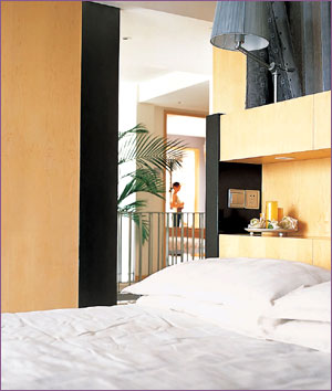 由卧室打开的门可看见其他居室的一角,使空间变得丰富了。