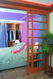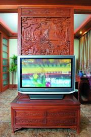 一木一个家 一居室的功能划分非常考验设计师的功力,从玄关跨入室内,一张方桌和四把坤椅组合成小餐厅作为过渡,旁边的角几上摆放了考究的茶具,暗示出此处是女主人的专属空间,在这里,陶小姐常和她的朋友们一起喝茶、聊天。有时,她也会一个人于此静静地坐着,悠闲地体味二人世界经历的那些日子。 左边用玻璃 推拉门 围合出通透的卧室,再往前,一幅雕镂着图案的 隔断 既充当古朴的电视背景墙,又分隔出一个功能齐全的书房。阳台打通安置了一个中式坐榻,整个房间的色调非常统一。 “现在人都讲究环保,我们也马上想要个小孩,所以特别担心装修污染问题。”张先生说,“我们家所有家具、 隔断 、柜体都用的是同一种 木材 ——泰国柚木,完全是装修公司的师傅手工做的,连吊顶、垭口、踢脚都是。” 光那幅双面雕的 隔断 ,师傅们就雕足了六个月。小两口对中式家具的态度与有些收藏家不一样,他们是真正把它们当做家具来使用的,而不仅仅是为了装饰或升值。就拿书房的桌几来说吧,一般陶小姐占用书房的时间较多,张先生特别找到一张纤巧的明式灵芝台图片让工人仿制,据说如果是真品的话要卖到几十万。而他们只享受古雅样式带来的美感,破费又不至于太多。所有家具上刷的都是植物油,没有刺鼻的油漆味,还越擦越亮呢。