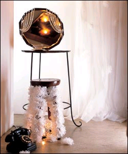 3、发挥创造力,给没有靠背的椅子加个装饰也很不错。 在椅腿部分挂满用棉纱面料做成的成串花朵,它就成了世上独一无二的椅子,一定会留住不少人的视线。