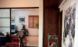 ![]() ![]() 自然淳朴的点缀 如果说黑白相间的色调给家里带来现代派的力量和神秘,那么天然色彩的出现就是那种画龙点睛式的点缀,它恰到好处地糅合了黑白原色给人视觉多少有些冲击的突兀状态。 从进门处的走廊开始,主人便宣告了这种自然主义的存在。我们可以看到,在大门与客厅之间的回廊的顶部,不再是刻板的水泥做成的天花,几条原木被整齐地镶嵌在顶上,原木里面则是一盏廊灯。主人告诉我,那几条原木是用螺丝固定起来的,如果灯坏了,也可以很方便地把原木条拆下来换灯泡。看似很小的一个设计,却瞬时让整个空间自然灵动起来,四处都能感受到浓郁的生活气息。一个热爱生活的人,会绝对精挑细选每一个细节的设计陈列,并从中发掘出无限的价值和乐趣。 当然,对于热爱生活和热爱艺术的主人而言,家居生活中是不能缺少绿色的。绿色的生命是这房里最让人心情舒畅的元素,墙角边上的发财树绿得欢快,绿得柔软,绿得让人不禁想去怜爱;还有那茶几上的狗尾草和花瓶里斜着的几朵莲蓬,淡淡中消释了今天城市里的鼓噪,一片自在安详的世俗画面里,桌椅、电视、草叶、扫帚、报纸,甚至是那沿墙面站立的大书柜,传达的不是对金钱和艺术的炫耀,而是存在于我们内心的对于简单与闲适生活的向往。 客厅和画室通过隔墙打通,非常简炼 中国意境的画室 客厅和画室只是用一道日式趟门隔开,简单明了,但两处空间的风格却迥然相异。画室是主人工作的地方,其设计自然体现了中国文化追求意境的内涵,你看那满桌的笔墨淋漓和散乱地上的一卷卷宣纸,当丝竹管弦之声缓缓响起,外界的繁杂、紧张、焦虑都消失殆尽,有的只是挥毫泼墨的酣畅淋漓。 由于工作的空间需要,画室是由两个房间打通后形成的,虽然空间比较大,却显得妥帖有序。两面墙是用来挂置作品的,既可以欣赏,也可以随时对作品做出修改。另外,墙上还用小张纸贴着一些电话号码或是当天必须完成的重要事项,一切的设计都是为了方便艺术创作。 画室的顶上有一条延伸出来的墙缘,上面陈列着主人专门从西北带回来的陶器,古朴的图案和色泽为整个画室增添了浓厚的传统文化气息,虽缄默无语,却洞悉古今。 画室是主人工作的地方 画人说家: 我喜爱简洁的空间和 线条 ,同时也喜欢自然淳朴的家园。在我理想中的家,豪宅华庭非所好,素雅自然即可居;庭前当留一片绿,堂侧宜植树成林;半亩荷塘能引鹳,几处曲径常通幽;亭阁掩映春花秋实,画余自耕蔬果盈园. |