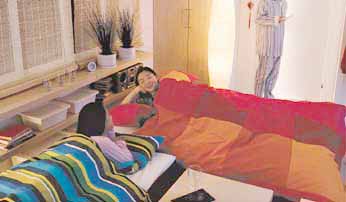 搁板+布帘:对付拥挤的厨房 再加上一个可以遮百丑的漂亮布帘子,你的小小空间就不会因为各种餐具杂物的存在而令你尴尬了。你还可以把布帘用做临时性的房间分隔墙,或者用来给自己的小卧室划分出一个灵巧的小更衣间,甚至你还可以把自己凌乱的办公桌和成堆的CD从朋友们的视线中隔离开,让男友总能被你客厅的整洁和体面而赞叹不已。而且这个关于理家的秘密只有你自己知道。嘻嘻。 将折叠式的椅子和坐垫收纳到看不见的地方,用的时候再拿出来,是保持客厅整洁的好主意。这个小等不仅可以作为随意搬动的坐椅,还能在里面放置相册、餐桌布,来客人的时候正好用得上。 “五一”假日,老同学要来我家住上几天,如何才能在小小的40平方米里让大家住得舒适呢?几件功能性很强的用品就能让大家见识我的理家才能。怎么样,我还是个挺称职的好主妇吧。 |