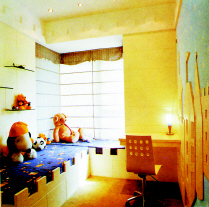 图片二:鸿利博雅装饰公司 电话:84641151 鲜艳的颜色搭配、精巧的玩具架满足了孩子的需要,给孩子营造了一个宽松的空间。 公司:创艺苑第二工作室 电话64025031-513 经过合理的空间造型设计,小小的卧室具备了儿童生活的全部功能。