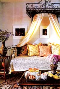 颜色变换心情 寝具的颜色最好与房间、家具的色彩相谐调。如奶黄色墙面应该配浅棕色有花纹图案的床罩,棕色的家具可配淡红色等暖色调的床罩,这样会使人产生美观活泼的感觉。空间较大的卧室选用浅咖啡色大花型图案的床罩,可以减轻空旷之感。老年人的居室用浅橘黄色的床罩,能使人精神振奋,心情愉快。新婚者的居室宜选用鲜艳浓烈色彩的床罩,为房间增添喜庆气氛。倘若居室主人患有高血压或心脏病,最好铺上淡蓝色的床罩,以利于血压下降、脉搏恢复正常。情绪不稳容易急躁的人,居室宜用嫩绿色床罩,以便使精神松弛,舒缓紧张情绪。一般而言,床罩的颜色以淡雅的色彩居多。秋冬两季气温下降,天气寒冷,床罩的颜色应趋向暖色,在质地上应该选择较厚的面料。 |