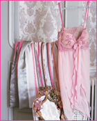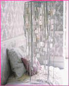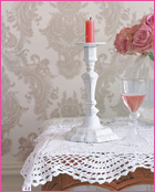 流苏 这里的流苏是指各种花边、绣品等对细节的装饰。看, 吊灯 也不需要明确的轮廓,可以用粉绿的丝带搭配贝壳来演绎。壁纸、餐巾、睡衣……连烛台、镜子也用古典花纹来装饰。复古风就是拒绝简单刻板,将古典的浪漫进行到底。