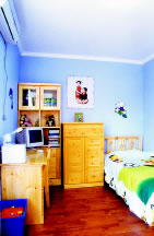 依据主人的个性特点进行有针对性的设计,是房间需要给人传递的第一信息。走进这套130平方米的住房,沉稳、大方又不失典雅气质,是带给我们的第一感觉,这一切应该缘于设计师对整体风格的准确把握以及恰到好处的设计手法。 居室的主材选用的是胡桃木。客厅,从装修到家具再到配饰,统一的风格、鲜明的个性在不经意间流露。 温馨家居的卧室是家人的安乐窝。本案中我们会看到三个卧室,首先是令主人满意的主卧,,一眼望去最吸引我们的是简洁、大气的梅花吊顶,主人说每天看着它能做个好梦,与洁白的床盖相得益彰。其次,我们还会看到两个活泼可爱的儿童房,因为主人有一双招人疼爱的龙凤胎儿女。女儿房天真浪漫,所有的家具和儿童床均是现场打造;男孩房活泼素雅,有足够的空间供小淘气折腾。 |