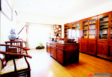棕红色的家具彰显品位,古朴的纹路带出了历史感,增添了文化韵味。不追求豪华形式,只在乎内在品质。书架的装饰与色彩和谐搭配,整个房间庄重而典雅,以木格博物架饰墙面,不经意间流溢古意,更具文人气质。 |