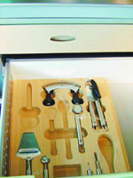 3灵巧转角柜 小厨房的每一方空间都应该充分利用,拐角也不例外。这时候小小的转角柜自然就大显身手了,既增加了厨房吞吐量,又解决了两边橱柜在拐角处断裂的难看与空间浪费。 4秩序井然(井然博客,井然新闻,井然说吧)的抽屉王国 抽屉里的东西是不必挤成一团的,分割有序的空间小 隔断 、各归其所的用具小床,都俨然一个秩序井然的小王国,让下厨的你拉开抽屉就能直奔目标,不必忙乱地把抽屉翻个底朝天。