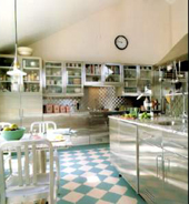 走廊型:也称双墙型,将工作区安排在两边平行线上。在工作中心分配上,常将清洁区和配膳区安排在一起,而烹调独居一处。如有足够空间,餐桌可安排在房间尾部。 变化型:根据四种基本形态演变而成,可依空间及个人喜好有所创新。将厨台独立为岛型,是一款新颖别致的设计;在适当的地方增加台面设计,灵活运用于早餐、烫衣服、插花、调酒等。 |