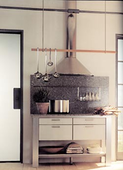 男性对于厨房的设计往往要求简洁,虽说不会常常下厨做饭,但三五朋友一起喝酒聊天倒是常事,开放式厨房非常适合这种单身男性的生活状态。讲究造型的单身男性一般对金属材料及直 线条 有某种难舍的情结,因为金属质感和 线条 的时尚感非常适合男性偏好夸张和扮酷的性格。不想在聚会后苦受清洁卫生繁琐折磨的男性在材料的选择上一般倾向于易于清洁的材质,比如不锈钢或者烤漆,这些材料有着非常耀眼的光泽,同时又极易打理。