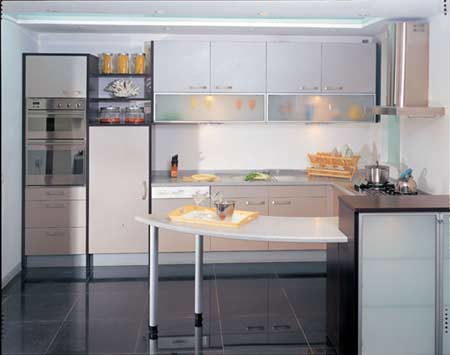 材料选择玻璃或金属材制的产品 小厨房的设计要选择一些展示效果较强的材质和颜色。首选材料是玻璃,这是因为玻璃材料具有通透感,特别是吊柜中玻璃边框的运用,使人不会感到压抑。其次,也可选择视觉冲击感较强的金属材料。 墙面选择单一的浅色 墙砖 小厨房的色彩要有亮度,但切忌花花绿绿。不能使用印有立体感图案或明暗对比强烈的装饰材料,否则,会使厨房面积在视觉上显得狭小。尤其是墙面色彩安排宜以白色或浅色为主,不宜使用反差过大的颜色。 地面简单干净是第一选择 素色的地板会出现明显的污渍,选择有斑点或图案的地板,能够节省清洁工夫;浅色的地板会令房子更明亮,深色地板则会使房子较暗;过分鲜艳夺目的图案会使画面凌乱,所以在小厨房里铺简单的地面永远是正确的选择。 色彩采用亲和力强的颜色 一般可选择单色调、浅色系。单色调、浅色系因有扩散和后退性,使居室能给人以清新开朗、明亮宽敞的感受。橱柜不宜使用黑色、深棕色等较暗的颜色,白色、浅灰色或明亮的奶黄色、浅蓝色等都是不错的选择。 |