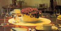 只有1/4的家庭会在餐厅摆设植物,这点倒是蛮奇怪的。餐厅是家庭成员招待亲友并让对方留下印象的地方,通常有足够的平面空间放置盆栽,而且位置靠近厨房而浇水便利。此外餐厅很少特意装潢,极适合摆设型态吸引人的观叶植物及色彩豊富的开花植物。 大部分家庭的餐厅都很小,占满了椅子、桌子及工作台,因此空间不足是个问题。站立地板的盆栽可能会成为走动时的障碍,或在拉开椅子时被撞翻。千万别使植物成为室内的障碍物。 就算是最精简的餐厅,在餐桌中央摆设盆栽以取代切花,还是有很出色的效果。设计时须注意下列三项原则: 1. 植物的形态必须低矮,才不会防碍与对坐的人进行谈话。适合的植物有:非洲菫属、番红花属、矮性仙客来、椒草属、四季秋海棠、冷水花属及小叶的常春藤。 2. 植株的生长状况良好。怖满灰尘和病叶的植物,加上活碰乱跳的绿色蚜虫,不但令客人不舒服,主人也会感到困窘。 3. 避免气味过于浓厚的植物。香气浓郁的风信子可能会掩盖了食物的气味;紫芳草盛开时则会散发出令人不舒服的刺鼻气味。 在狭小的餐厅里,除了餐桌以外,窗台(若为南向须慎选植物种类)或壁式的盆栽架都可以摆设盆栽。 如果你家中有大型餐厅,那么室内植物设计可以发挥出相当的装饰效果。餐厅的角落放置独特的优型植物,柱状基座可将蔓性植物架高、工作台摆设盆栽组合等。 有些房子的起居室与餐厅是合并的,有时我们会希望将饮食区独立开来,而运用室内植物可达到最令人满意也最省钱的效果。其方法有:利用生长势强健的爬藤植物、攀爬在一直立的架子上形成植物屏风;将独立的盆栽排列在地板上(底部有集水盘)或排放于防水的植槽中;将富色彩变化的吊盆植物置于木制的分隔柜上,以使餐厅和 其它 地方划分出来。 |