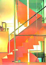 ![]() 材料:枫木染色、不锈钢 电话:64028791 设计:张逸 施工:东易日盛装饰公司 大面积的艳红色踏步与挡板,极尽张扬之能事,反衬出不锈钢楼梯扶栏的精巧。两种色彩和材质的强烈反差中,演绎出一道令人赏心悦目的别致风景线。 |