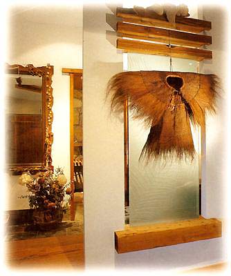 创意的价值在于第一发现。因袭,就恰似吃别人的剩馒头了。图中的玄关创意构思就显得不落俗套,顺畅自然。一挂蓑衣,几根横木,把现代人的回归自然和怀乡之情,尽情释放。 |