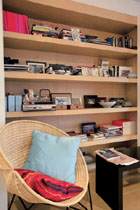牛安很牛,是很早留洋的那种,并且去了很多国家。她有很强的语言学习能力,英语、日语之外,短短时间里还学会了韩文,并且在当地的杂志上用那小蝌蚪一样的文字写艺术评论文章。也许是这种多样化的经历使牛安养成了开朗率真的性格。中国制造的糖果有时会有些洋味,花花绿绿的糖纸上不同的文字标识着她的品质:甜、甜美,但不油腻,干脆纯正,是个果味硬糖块。 这样的糖果选择了一款透明的包装,她要的是敞亮的空间,把自己愉快地释放出来。牛安把家里所有的门都省略掉。圆弧形的装饰墙起到了空间分割的作用。围着白色的弧形墙,画室、卧室、卫生间、厨房,依次排列开来。为了符合中国人的生活习惯,设计师一再劝牛安给卫生间留个门。经不住那个男人喋喋不休的语言攻势,糖果终于同意了。于是全面真理成了局部真理。不过时间长了,牛安还是对此耿耿于怀,她说如果有机会再装修房子的话,一定不向别人妥协,坚决将透明畅快的主题进行到底。 其实牛安的主张还是有理性成分的,一通到底的格局比较适合做画室。大大的画板只要小于等于层高,就可以搬进来。那个可以升降的梯子,任意地被主人拉来拉去,根本不用担心有些什么磕碰,上下左右绝无障碍物。画桌上永远不用收拾,其实也是收拾不干净,哪天实在是有碍工作了,就让家什迁移一个地方,但一定得是视线之内,伸手可及的,这种无分割的房间,正好成全了牛安的这些习惯。