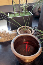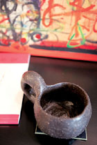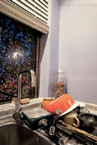 沿用一下那个作家的定义,牛安这颗水果糖是母性的,也就是说是温情的。没这么复杂,简单点说,就是牛安的小女人特性很突出。在家里的细节上牛安十分用心,希望能够精致有味道。 生活应该有些停顿,人应该有些闲情逸致。中国文人的习惯牛安很自然地继承了。这个拿着美国身份证的女人,毕竟是在中国完成了基础教育。养两尾金鱼,种株竹子,小女人很有爱心地照料着它们。是啊,陶冶了牛安,也成全了家,何乐而不为。 做画累了,小歇一会是惬意的。坐在圆形的藤椅里,把自己彻底地放松。弯身坐在蛋形的凳子上,看看自己的作品,是欣赏也是审视。简单的长条椅上,可以让自己半倚半躺。这种状态适合喝杯茶,给自己用的杯子一定要特别一点。其实牛安家里所有的杯子都很特别,因为没有一个是重复的,每一个都是她淘来的。手中一盏茶,身后的香炉里飘荡着缕缕青烟,睡上一会,说不定会有什么意外的收获,一觉醒来,又是一幅佳作应运而生。 经过那个漆黑鬼魅的角落,关上那个可以顾影自怜的浴室房门,牛安要为自己做一顿可口的晚餐。爱护自己是女人的本性,但在油烟味弥漫的地方还要用颜料涂涂抹抹,就应该是画家的特性了。洗好的碗筷随意地堆在那里,到底是美国式的还是法国式的,就搞不清楚了。 |
