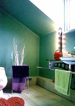 设计主调:简洁 明快 舒适 随意 空间设计就像是一本本书,不同的空间会有不同的内容。每个空间都应体现使用者的文化与精神,对于设计师来说能遇到一个兴趣爱好都与自己相仿的客户地确是一件幸事。 终于自己能有一套房可以随心所欲。房子的面积还算够大结构也较合理,所以设计的重 客厅:总体色调是以黑白为主,在其中点缀绿色、红色,既统一也不显得单调。家具陈设没有采取常规的手段,没有电视背墙也没有正规的电视柜,而是采用一款可随意活动的电视架,将视听区与阅读区分开。这样无论在客厅的哪个角度都能随意调整电视的方向。 主卧:方形主卧的墙面是深紫色的,在保留多边形斜面屋顶的前提下,将它刷成白色。这样便形成了一个多边形与正方形,深紫色与白色的色彩与 线条 的对比空间。加上白色地板上放着黑色铁艺床,使整个空间显得非常的宁静而生动。 ![]() 卫生间:墙面是绿色 防水涂料 ,地面砖也是绿色的。白色洁具与白色异型屋顶相互呼应。在窗户的下面有一个玻璃的洗漱台,即能洗漱也能做为化妆台用。 ![]() 书房:黑色的写字台围绕着灰色的墙面,形成了一个L型。台面上被书、图纸和电脑设备堆满,充分体现了书房的实用与随意。 ![]() 客房:客房的陈设很简单,白色的床单,黄色的墙面加上红色的 窗帘 ,突出了主人的热情与好客。 |