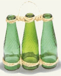 * 吊式花瓶: 三只相同式样,相似颜色的汽水瓶,洗洗干净,用麻绳捆捆,连接起来,再绑上吊环……就成了一只别有风味的吊式花瓶!