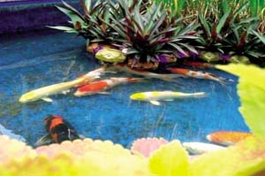 接下来不是马上就种菜,而是好好地养养水。最好是在池内放养鱼虾,锦鲤、金鱼、藻虾等等,锦鲤不要太大,色彩最好鲜艳点。一群美丽的锦鲤在撒欢着,非常养眼。记住给鱼虾定量喂食,不能让残留的鱼食影响水质。鱼类的排泄物会通过细菌的分解,提供蔬菜所需的营养,不必再加 其它 肥料了。