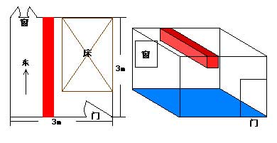 问:请你详细回答一下我的一些关于家居风水问题!如图,这是我的房间(约9平方米),房间顶部由一根水泥横梁,阻碍了家具的放置.我的床长2m,宽1.5m.应如何放置才是最适合的?(即不对着门口,人也不睡在横梁下). 答:根据你房间的结构,若利用原有条件,是无法避开床冲门或横梁压顶,需要用风水"石"来缓解。建议有三: 一、就图示床位位置,虽避开了横梁压顶,但床冲门,按风水说法,横梁压床比门冲床的像更凶险一些,所以需在进门玄关处树一小屏风,与古建筑进门处照壁类似设一小挡屏,屏风可买也可自己动手做,建议用木头或磨砂玻璃,如此既挡住冲门的"风",又保证卧室良好的私密性。 二、床可以避开冲门摆放,但梁下须放置两头石制或工艺的象,由大象来给你顶梁为最好。若有心于风水,望努力寻觅。 三、我有一建议:一般来讲,横梁切勿压头,如不可避免,宁可压到脚为最上策,根据你房间结构,床可放有窗的那面墙(即把图示的床横过来)。处理床对门的问题时,放置挡"冲门风"的挡屏即足以避开,挡屏既美观又保证了卧室良好的私密性。如仍对横梁难以释怀,继续在梁下放置大象两头,足以高枕无忧了。 |