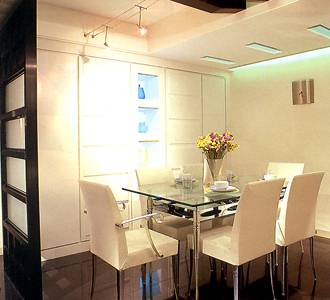 三楼为大门入口处,故设计上以开放空间为主,攘括玄关、客厅、餐厅、厨房、客房五大区域,并以轻松自在的美式休闲风格为整体设计主轴。 白色迷情是餐厅的主题,走的是现代风情:嵌入式餐具柜做多元化设计,结合墙面整体搭配,中间设计精品展示柜,利用侧面转向做为玄关鞋柜,强化空间的实用机能与设计巧思。 主卧室典雅温馨,顺梁做床头造型与梳妆台设计:利用透空喷砂玻璃做为卫浴衣物间的区隔,简洁中不失质感。 动线的安排依据业主的生活习惯循序渐进。 客厅布局以整洁有序为主线,天花对应设计,色彩跳跃但毫不夸张。沉静中显示出少有的雅气。