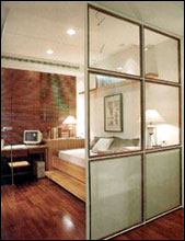 在二楼的格局规划上,设计师则强调大两房的观念,他表示,很多建设公司为了广告效果,总是勉勉强强地硬凑四房的格局,而使双亲房往往小得可怜。为了不使长辈心理产生被忽略得感受,设计师让双亲得坪数与主卧房相近,甚至更大。双亲房与小孩房之间的壁橱是采两面式的,而不是两大片厚实的衣柜并列其中,如此可以在置物功能足够的前提下,多滕出一个空间。