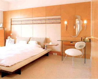 枕边可以转动自如的托盘设计取代了笨重的床头柜,使卧室更加的简洁、时尚。 |