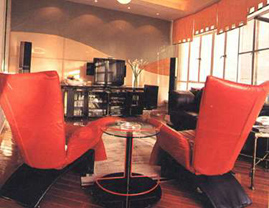 年青的屋主要求高科技感的设计,故除了框组与影音器材的巧妙结合外,家具亦富太空感, 沙发 便象飞机椅,椅背可倾斜。