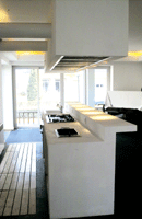 原户型中的阁楼是被吊顶封死的,平庸的吊顶同时也遮蔽了有趣的空间 线条 和让人心情开朗的空间高度。按照平面的面积来计算,这幢房子三分之一的面积是被浪费掉的,这对于喜爱挑高屋顶,并一心想把国外“阁楼居家”理念带到中国的设计师来说,简直是不能容忍的。 在与主人充分沟通后,设计师就开始给这个中规中矩的空间动大手术,拆掉了一部分吊顶,并把小孩房、储物空间及休闲阅读空间搬到了改造后的阁楼上。 于是,阁楼成了这幢房子里最可爱的地方,成了孩子的乐园。总的一部分吊顶拆掉后,并没有办法实现它的实用价值,但是普通的方形房间被加上了一个斜屋顶,使空间更高了,空间感受也马上不一样了。在超乎常规的空间高度和丰富的空间内容里长时间起居甚至工作,心灵的放松是无价的。 设计师对阁楼的情有独钟,或许因为他本人也是一个SOHO族。他给SOHO族有这样的建议:“如果可能,一定要充分利用阁楼的空间。高明的SOHO族在家里是不应出现床的,这样会给访客更职业的感觉。但家毕竟是一个生活起居的地方,于是,阁楼成了隐匿床榻的最佳地点。”同样,在西方,尖顶(教堂顶)的阁楼是很多专业人士和年轻人最喜爱的,它可以把私人空间完全隐蔽起来,阁楼的下面还可以成为招待朋友或客户的休闲地点,而很多设计师也以自己的阁楼设计为荣。 KITCHEN 廉价、实用的贵族厨房 在西方,只有豪宅才会有这种由砖石和水泥砌成的“灶台”和“橱柜”,这种材质的“橱柜”不会垮、不会裂、不会走样、不会变色,它的昂贵是因为它是一个庞大的工程。橱柜厂商在做好测量与设计后,再由工厂按设计单独制作一套模具,然后将模具运到施工现场,将水泥灌注进模具,最后 喷漆 、安装 灶具 及 各种配件 。但是在国内,如果利用“BUILD IN”的概念,成本就只要几百元。中国有灵巧的泥瓦工人,有廉价的砖、水泥、便宜的木头,手工完全可能砌出与西方贵族同样品质的橱柜,而中央岛式操作台则完全用砖砌成,外表喷塑处理,质地贵族,效果前卫。 除了这种欧化与贵族气质外,吴家的厨房更接近一个专业厨房,而非民用厨房。马力强劲的分体式油烟系统,抽油烟的能力是普通一体式 抽油烟机 的50倍以上。所以,这个时尚的全开放式厨房,在烹调任何风味的菜肴时,房间内都没有一点油烟的味道。 原色的木地板,设计的灵感也是来自星级饭店的专业厨房。地面可以直接用水冲洗,地板中间有适当的缝隙,污水可以通过地板下的排水系统流走。大约十块木板成为一组,每一组都可以任意拆取,便于洗刷和干燥,卫生可以做得完全彻底。 橱柜操作台前面的那面墙壁,用钢化玻璃代替传统瓷砖是一个出色的设计,这面墙的清洁绝对是使用时的头号问题,整块钢化玻璃贴上去,视觉上很前卫,又没有磁砖间那一条一条的间隙,可以一擦到底、不留死角。 要真正拥有经济健康型家居,就要懂得充分利用自然的资源,这是很简单的道理。吴家的装修在这方面最出位的设计是充分利用自然光。 想想自家的卫生间吧,电灯 开关 不远的地方多数会有一个换气 开关 。但是换气扇 开关 在吴家是没有的,卫生间的灯也只需要在晚上才开,房屋内的每个房间包括楼梯间这些地方,都会有一面大大的窗子,镶着有花纹的厚玻璃砖(玻璃砖还有保温阻热的作用),即使没有 窗帘 外面也无法窥见室内,但是阳光可以自由自在的照进来,同时,这些窗子也解决了所有的通风问题。 白天里阳光最活跃的地方,当数那个由天井改造成的阳光房。天井用钢化玻璃封顶,便于采光,而二、三层的地面同样使用钢化玻璃,阳光可以穿过屋顶长驱直入,一直照到一层的地面。种在一层地面泥土里的绿植也可以充分进行光合作用,制造充满房间的新鲜氧气。 作为设计师,范先生认为房子首先是给住的人提供一个舒适的生活空间,一个人为可控的环境。至于在这个大空间下,你以何种方式来起居倒并不重要了,任何地方都可以是卧室、书房、休闲区域。也许这样的理念会让一些讲究功能分区、礼数分明的传统设计师跌破眼镜,但是现在这个多元的世界里,还有什么事不可以呢?只要你自己愿意。 相关链接 厨房: 1.主人经常在家吃饭,小厨房的使用频率较高,易于清洁是设计的首要任务。因为低于周围的地面,而且地板下有单独的排水系统,所以这个刷清漆的木地板可以直接用水冲洗。而且可以一组一组拆下来洗刷,推在一起干燥。 2.大厨房因为经常招待客人,所以先择了钢质地板,这种钢地板多被用于工厂厂房的地面,耐脏又耐磨,几乎不需要保养。用在家里,除了具备上述优点外,看起来比较酷是意外得到的收获。 阳光房: 拨开地面上的小石子,植物就可以直接种下去。因为阳光房里并没有铺任何地板、 地砖 ,只是用石子装饰,所以这个阳光房甚至可以种树!不会再有小气的盆栽了,浇水的话也只要浇在地面上就行了。 一层公共区: 这不是第一个用页岩来做地面材料的案例了,不同的是,他们所用的面积更大,黑色页岩与家居风格搭配得更为和谐。这种天然板岩,使用方便,只需每月做一次清洁,很适合年轻人的品位,每平方米价格只有十几元钱。 |