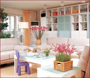 女主人很爱干净,家里打扫得纤尘不染。因为对白色特别钟爱,从家具选择到布艺饰品,大都是白色。纯粹的色调和简洁的家具,让这个家有种一气呵成的灵动。