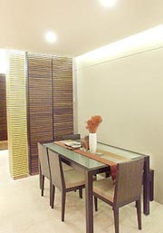 在了解了屋主的生活习惯,以及到房子实地考察后,Alan才会着手设计。他的信念是,一个家居设计,不是要把房子转变成一个示范单位,而是要屋主能在美观舒适的布置中生活。 他在设计房子时,有三大考虑因素,即空间的运用、利用自然光,以及创意和美感的结合。 尽管这间屋子内有不少储藏空间,但它们起着装饰效果,融入整个房屋的布置,如此协调,绝对不让你感觉橱柜的笨重。 比如,用来划清客厅和饭厅的橱柜,在客厅的一边是摆设橱柜,装上玻璃门,在饭厅的一边则是储藏橱柜,贯彻客厅的 线条 设计。